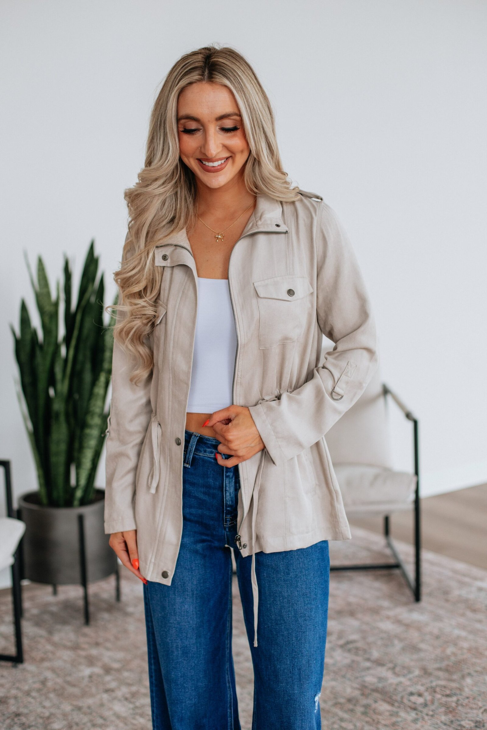 - Zipper/Button Front Closure
